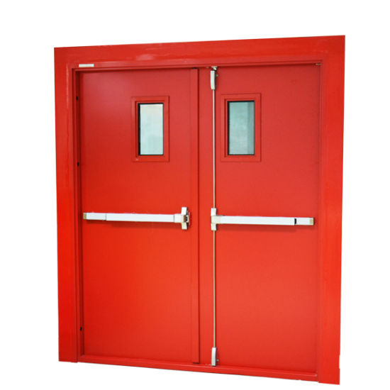 Realizada en lámina de acero zincada con sistema de doble pegado en pestaña. Refuerzos interiores en perfil de acero zincado. Relleno interior realizado en lana mineral de alta resistencia, con tratamiento especial para retención de humo. Refuerzos interiores para instalación de sistemas antipánicos o cierrapuertas.